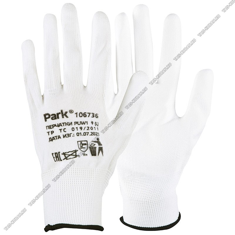 Перчатки д/сад.работ 9 разм (L) полиэстер+полиуретан PUW1-ладонь,высок.тактильн.чувствит,класс вязки 13,белый (12)