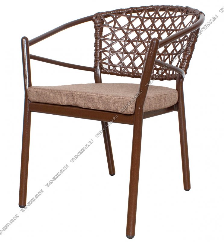 Кресло "Латте" с подушк (64х62 h79см) до 150кг,спинка ротанг,металл каркас,ножки б/оплетки, коричн (1)
