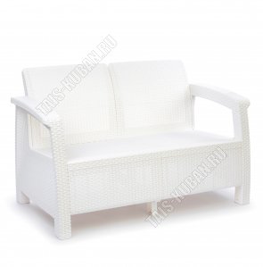 "Ротанг-плюс" белый Диван 2-х местн.(1270х70 h79см) нагруз до 106кг на 1место (1) Альтернатива