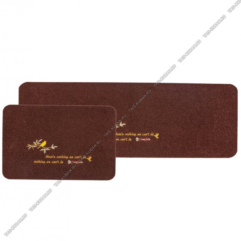 Коврик н-р 2шт (40х120+40x60см) "Велюр/Птичка" коричнев,вышит.рис,ворс h6мм,тпр основа (10)