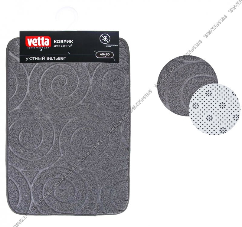 Коврик "Уютный вельвет" (40х60см) "Завиток" графит,основа h0,8см "губка вспенен",противоскольз (5)