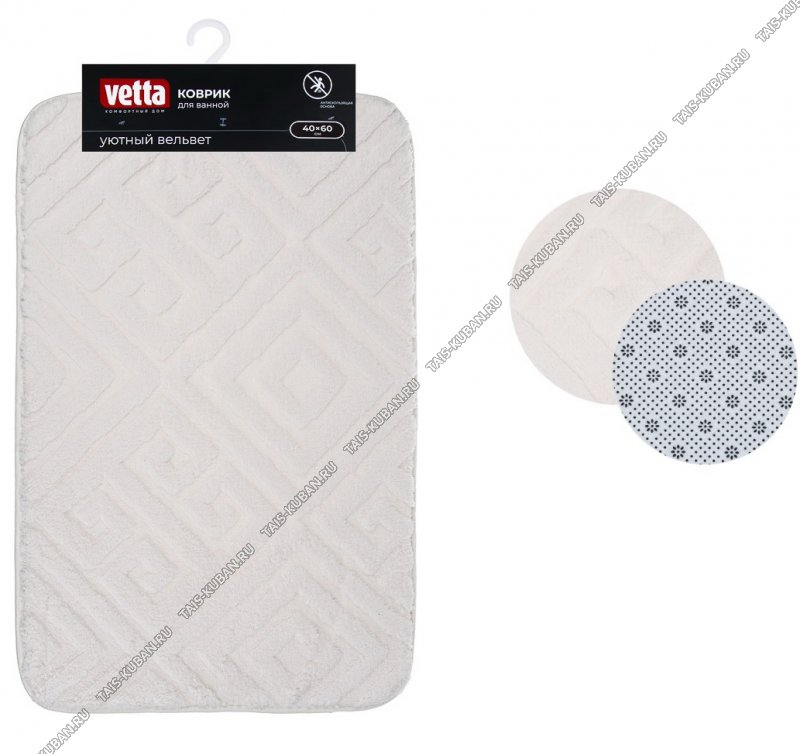 Коврик (40х60см) "Уютный вельвет/Греческий узор" молочн,основа h0,8см "губка вспенен",противоскольз (5)