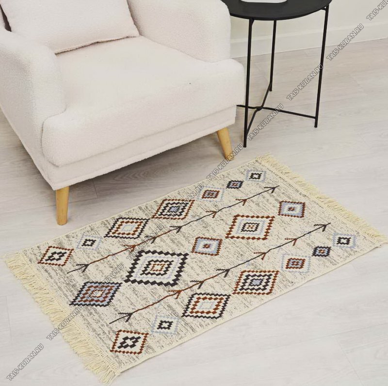 состав 50% хлопок, 20% полиэстер, 15% акрил и 15% вискоза,бахрома,KILIM (Турция)