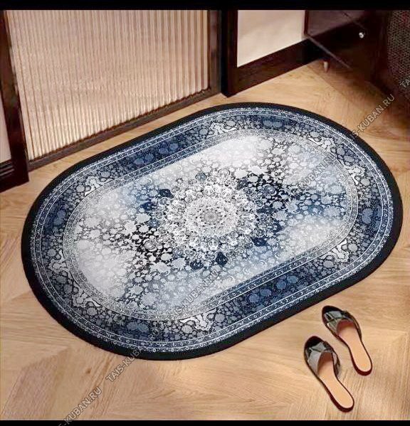 Коврик "Войлок" овал (50х80см) "Турецкая роспись" тём.синий,блестящая нить,прорезин.основ (10)