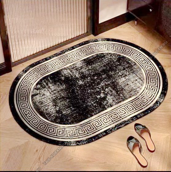 Коврик "Войлок" овал (50х80см) "Винтаж/Греческий бордюр" шоколад/золото,блестящая нить,прорезин.основ (10)