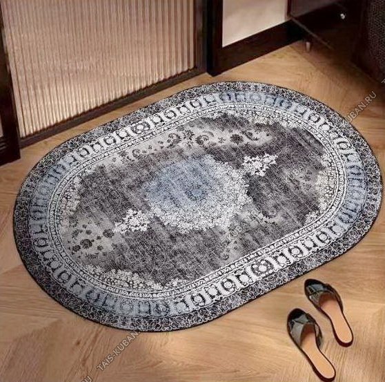 Коврик "Войлок" овал (50х80см) "Винтажный узор" серый/серебристыйблестящая нить, прорезиненная основа