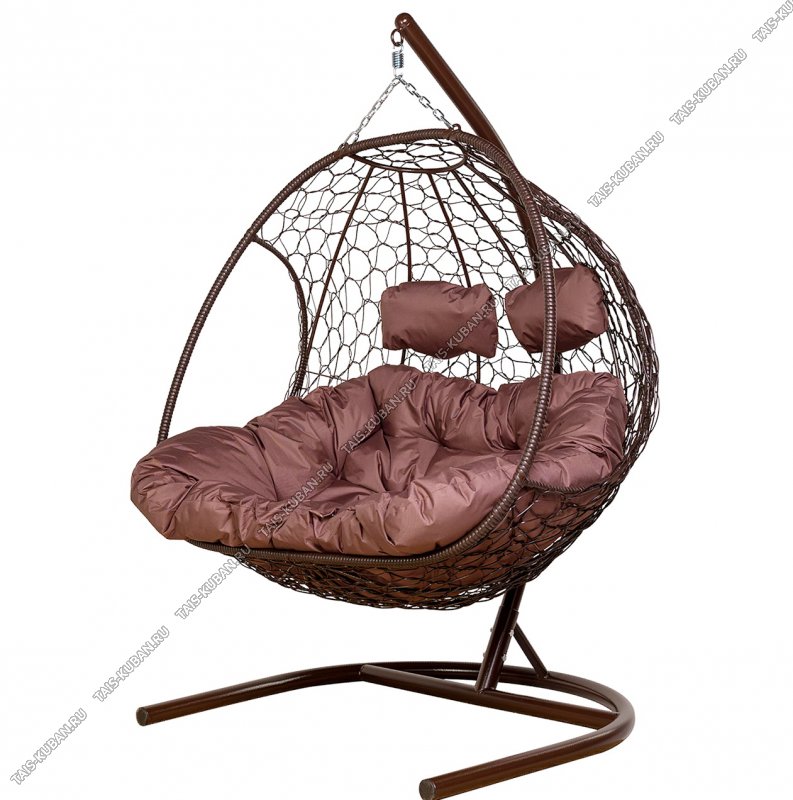 Кресло "На Двоих/Добрыня" коричневый/коричневый, на стойке, подвесное ,искусственный ротанг, каркас металлическая труба (133х117 глубина 112см h193см) подушка синтепон+водооталкивающая ткань, нагрузка до 200кг