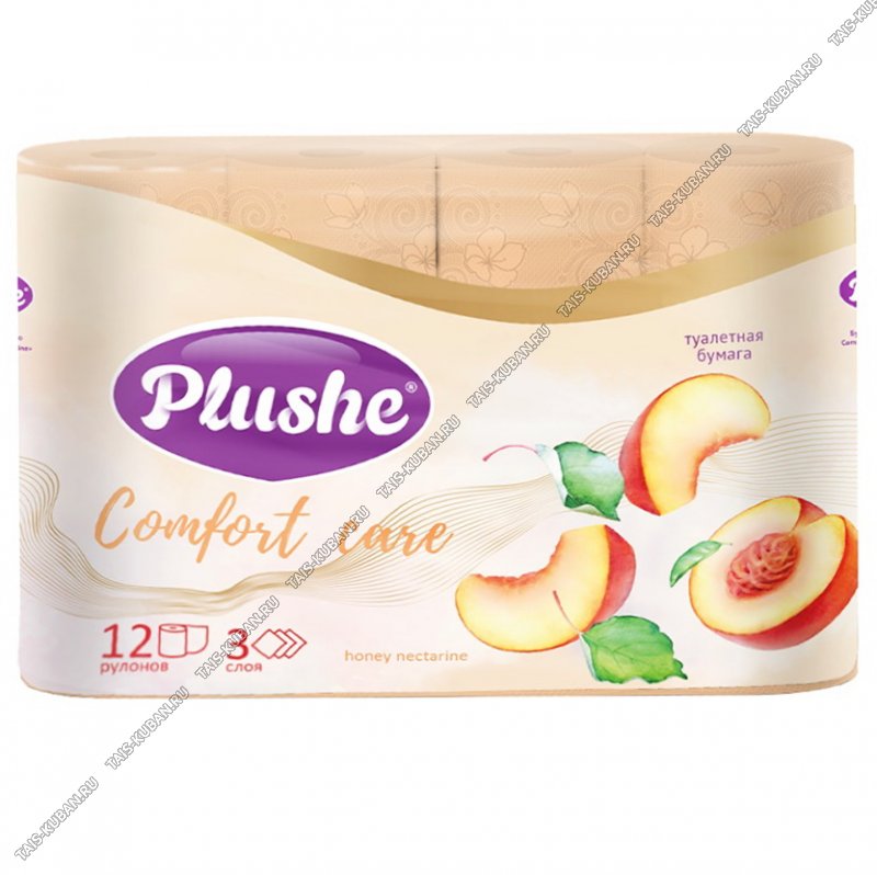 Туалетная бумага ароматизированная "Plushe. Comfort Care/Медовый нектарин" 3-х слойная,12шт по 15м в упаковке, (12)