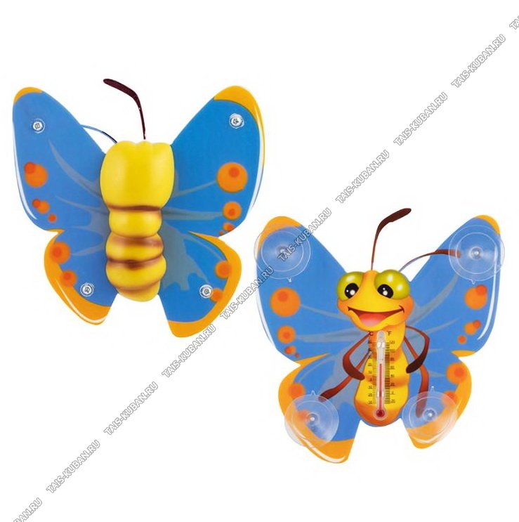 Термометр уличный для окон, на липучке 4шт (L14,5х15,3см) "Веселая бабочка" пластмасса,ПВХ,керосин, упаковка пакет (72)