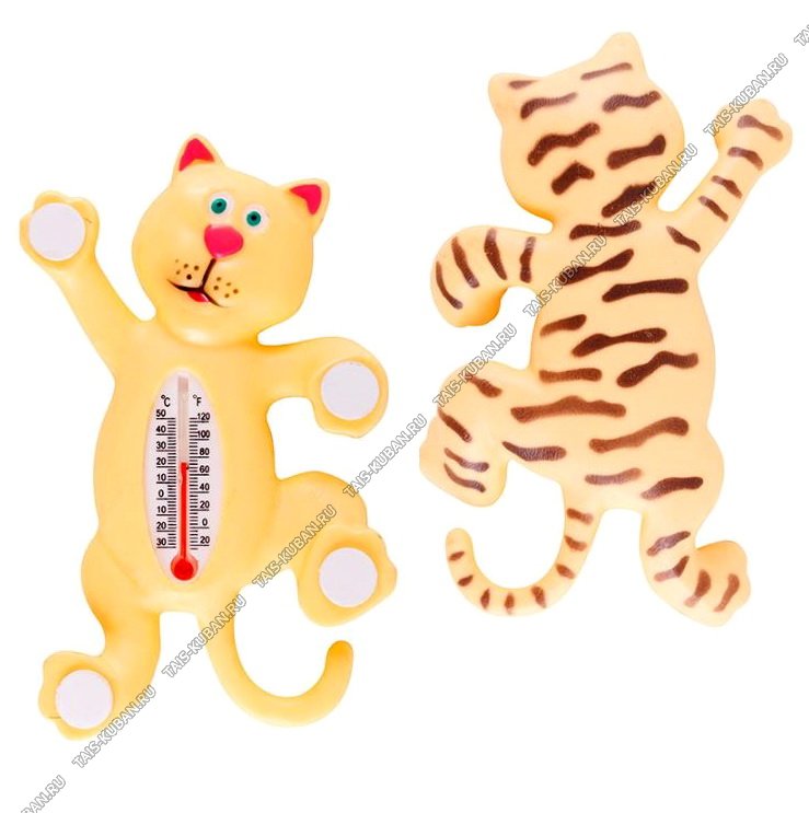 Термометр уличный для окон, на липучке 4шт (L16х9см) "Кот" пластмасса,стекло, резина, ПВХ,керосин, упаковка пакет (96)