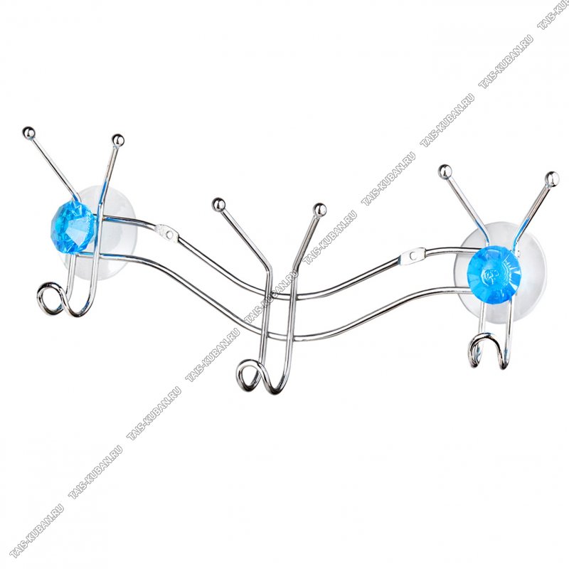 .БРИЛЛИАНТ синий Вешалка 3 крюч. 28х4х11,5см,хром.сталь,камни,на 2 присос.(12)