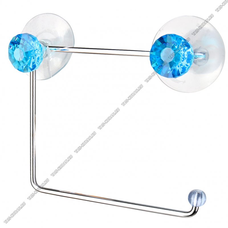 .БРИЛЛИАНТ синий Держатель д/туалет.бум.14,6х12,3см,хром.сталь,камни,на 2 присос.(20)