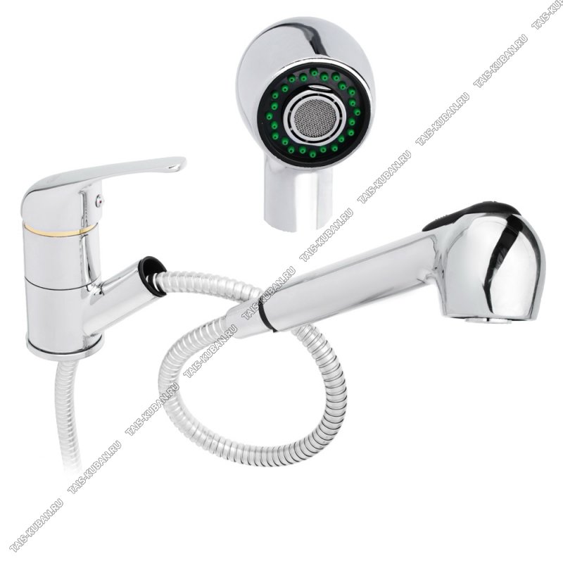 Смеситель для кухни 1-но рычажный, выдвижной, низкий излив h18,7 L20см