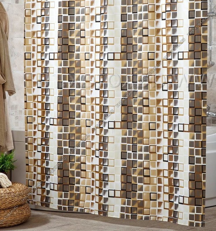 Штора полиэстер "шелк" (180х200см) "Мозайка" корич/беж, Miranda (24)
