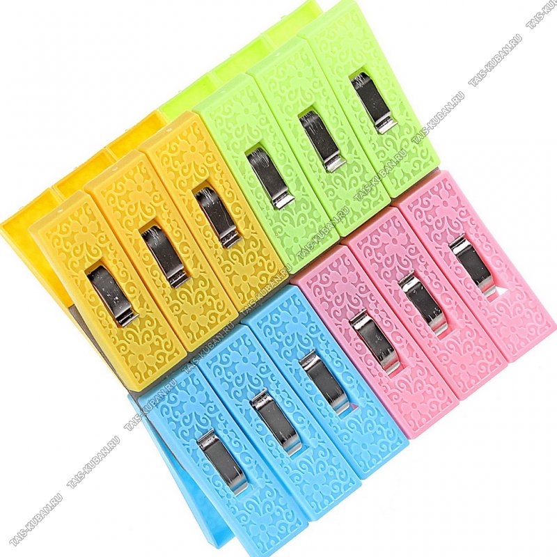 Прищепки д/белья пластик 12шт L8см Прищепки д/белья пластик 12шт L8см "Кубаночка" (150)