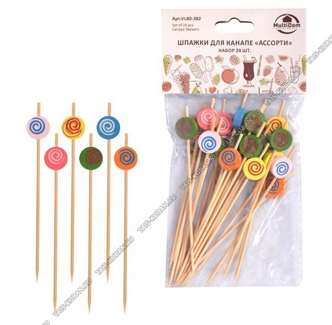 ПИКИ бамбук для канапе 24шт ПИКИ бамбук для канапе 24шт "Ассорти/Леденцы" (24)