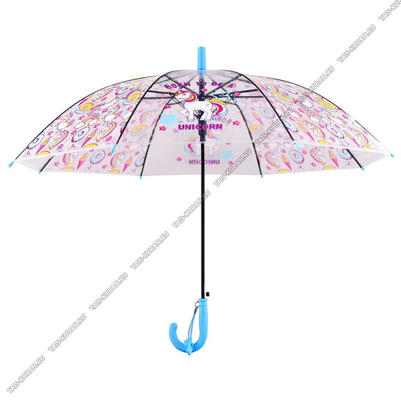 Зонт-трость детск, полуавтомат d80см "Единорожка" h66см,8спиц,прозрач (6)