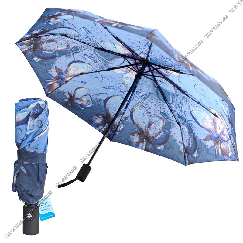 Зонт складной автомат d98см "Дыхание дождя" h55см, 8спиц, синий