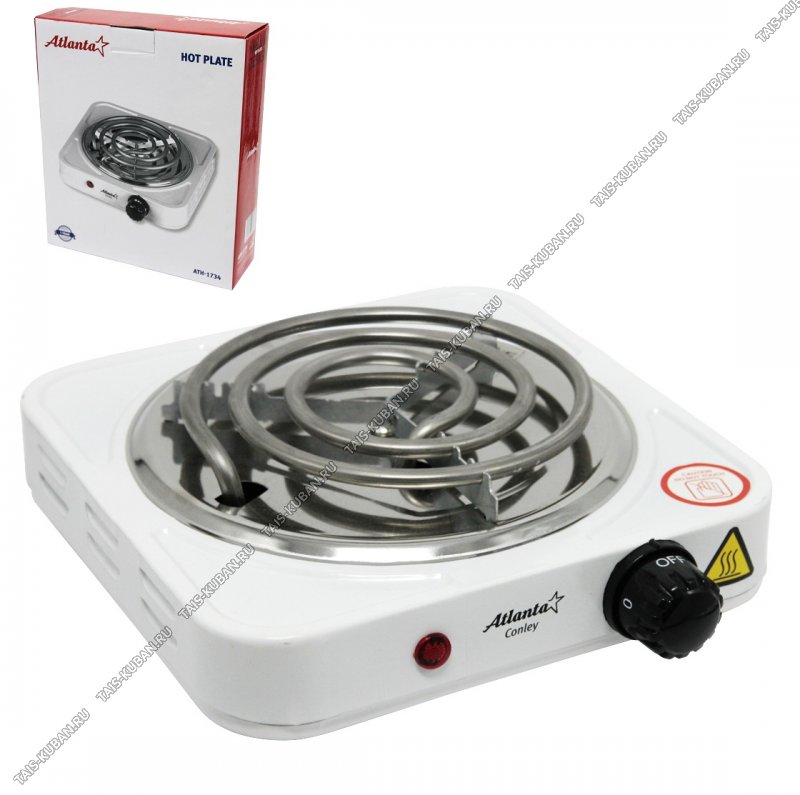 Плита электрическая 1конфорка ТЭН 1000Вт. спираль,белый (12)