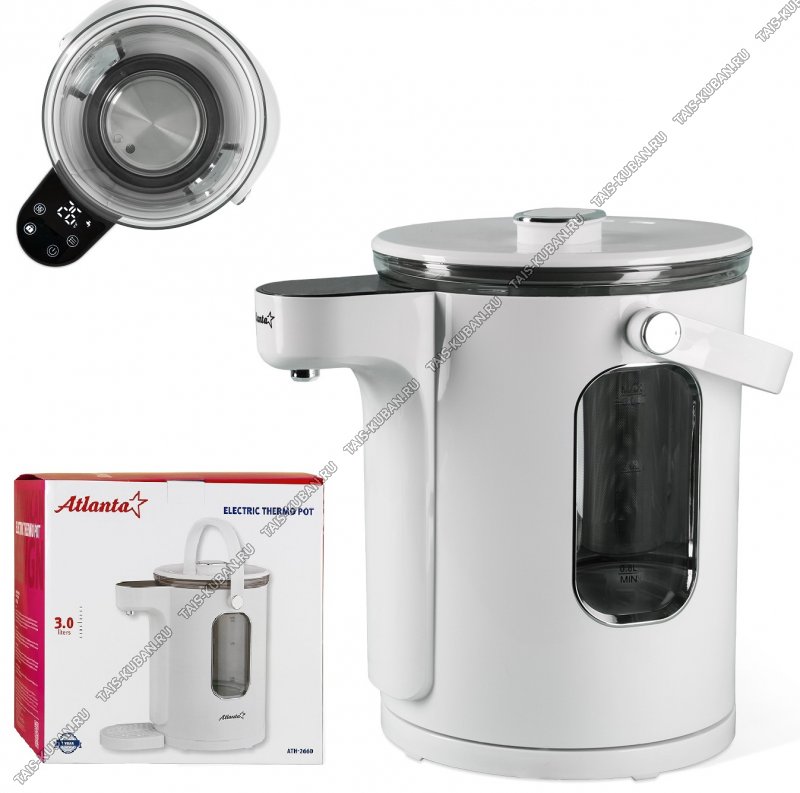 Термопот 3,0л 1600Вт,2-ая стенка(внутр.стекло),LED дисп,сесор.управ,регул.t,поддерж.t,встр.стакан.д/завар,автооткл,защ.б/воды, белый (4)