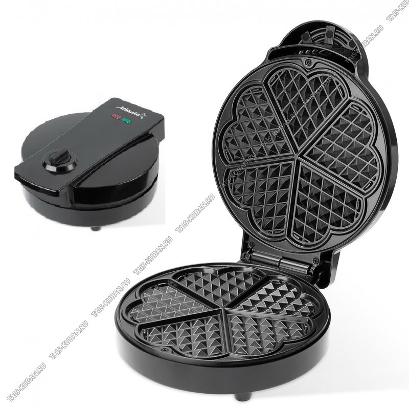 Вафельница 1000Вт, "Венские вафли", на 5 вафель, антипригарное покрытие, форма сердечки, световой индикатор готовности, защита от перегрева, черный