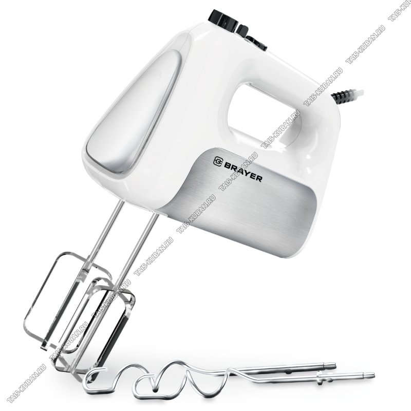 Миксер 500Вт 5скор,2насад.(взбив/замеш) реж.турбо,белый+нерж.сталь (6)