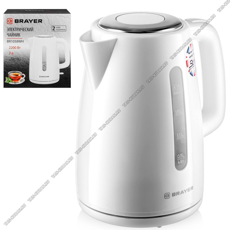 Чайник пластик. 2,0л 2200Вт диск,белый (8)