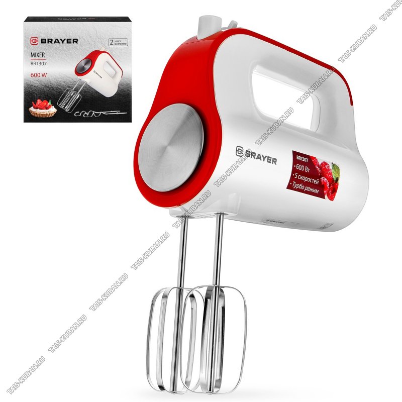 Миксер 600Вт 5скор,турбо реж,2пары насад,бел/красный (6)