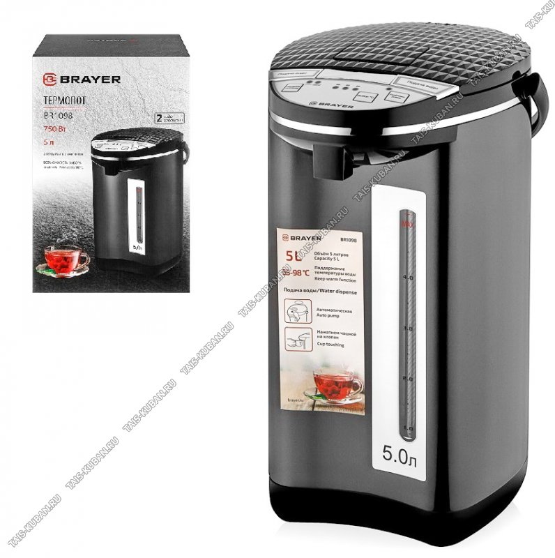 Термопот 5,0л 750Вт, 2реж. подачи воды,ф-ия принудит.кипячен, нерж.колба, поддерж. t, индик.раб, защ.б/воды,нерж, черный(6)