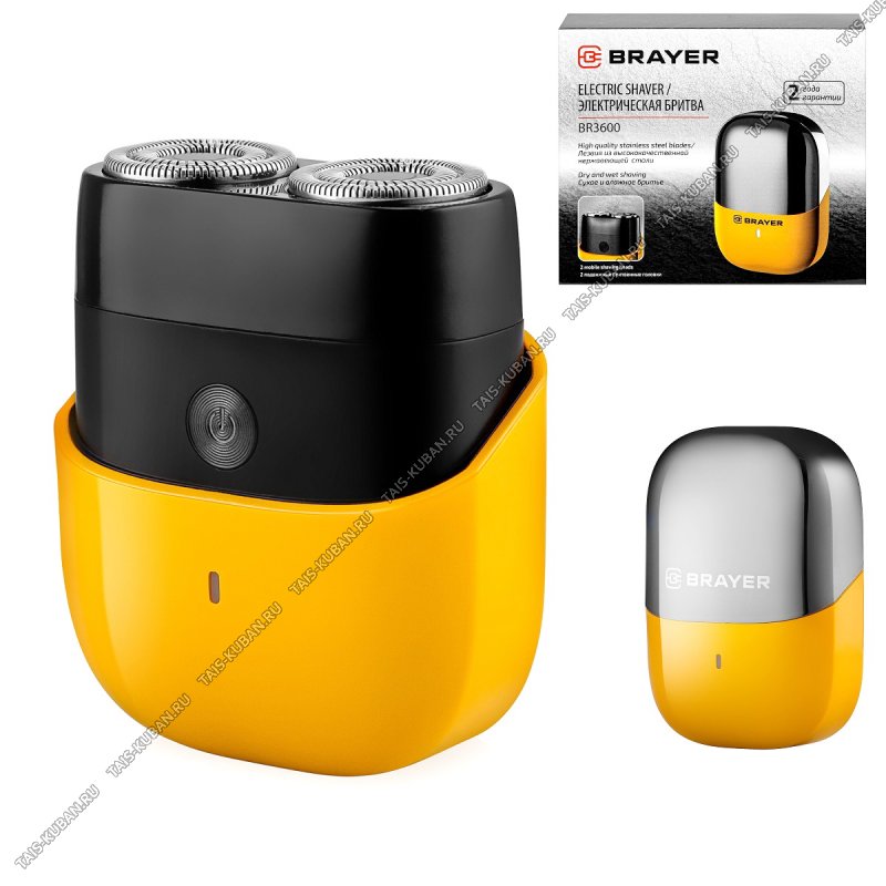 компактная (7,5х5см),2 подвижные бритвенные головки, время работы 60 минут, лезвия-сталь, самозатачивающиеся лезвия, сухое и влажное бритье: IPX 7, индикатор заряда, магнитная крышка, комплект щеточка, защитная крышкаи Type-C кабель