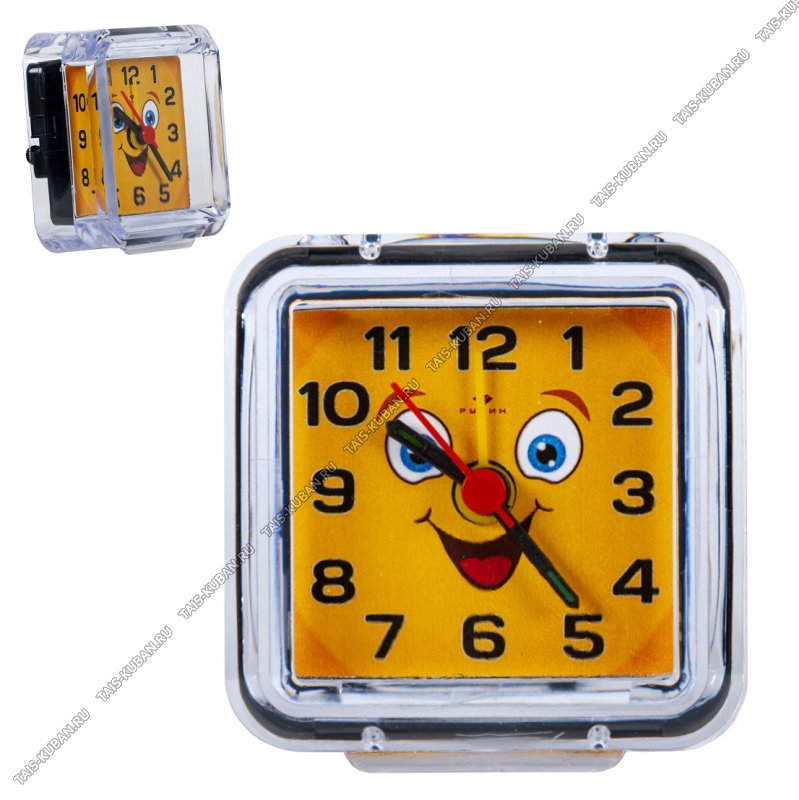 Будильник квадр. 7х7см "Смайлик желтый/Прозрачный" пластик, п/у (40)
