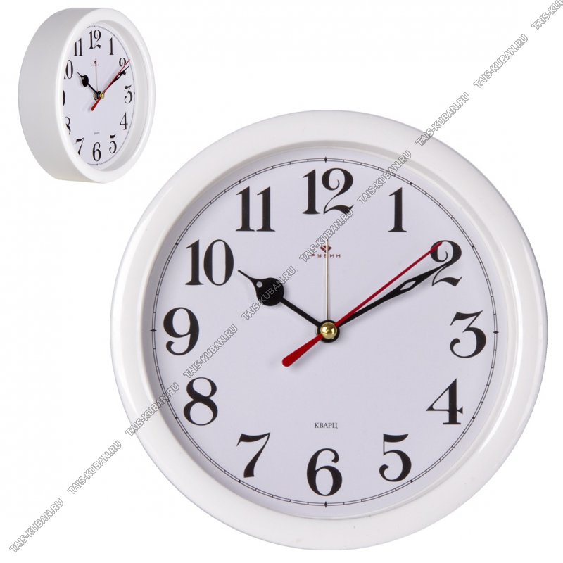 Будильник кругл. d15см "Белый" фигур.цифры, пластик, п/у (20)