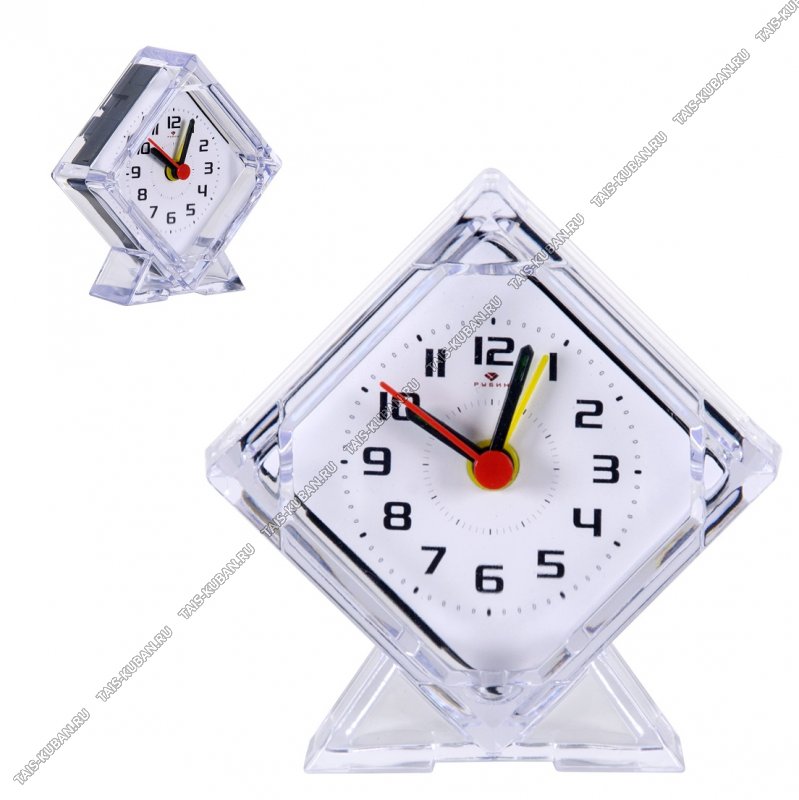 Будильник фигур. 8,5х9см "Прозрачный" пластик, п/у (40) ТМ Рубин