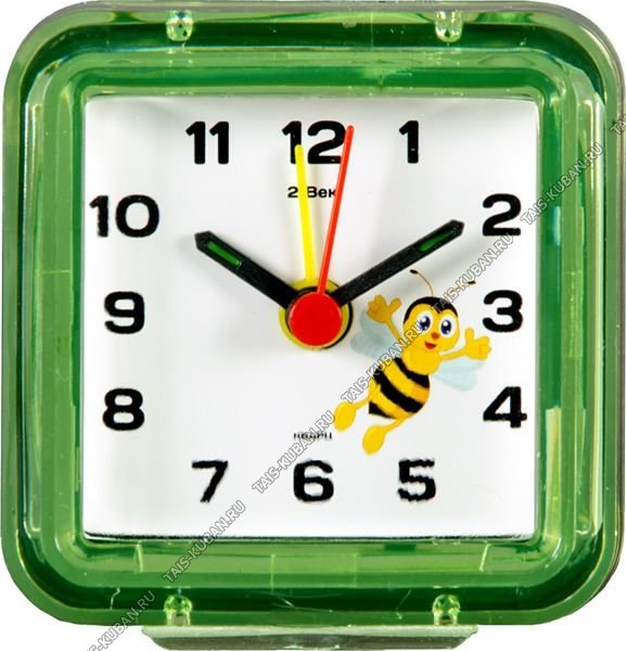 Будильник квадр 7х7см "Зеленый/Пчелка" пластик, п/у (40)