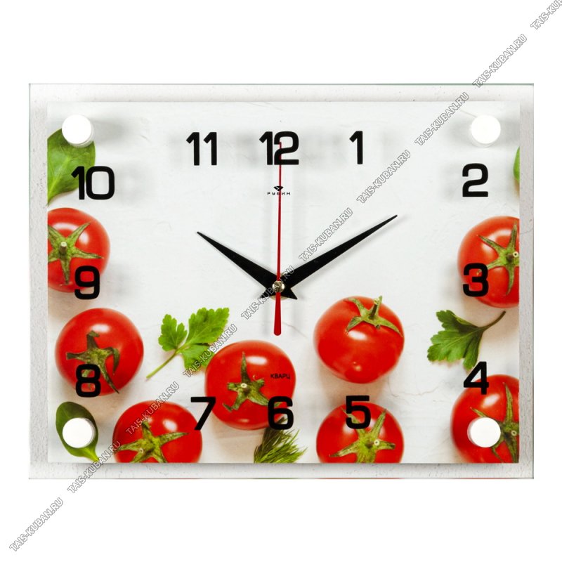 Часы (стекло/ДВП) (26х20см) "Помидорки" (10)