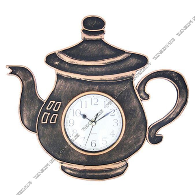 Часы (пластик) фигурные (27х24см) Часы (пластик) фигурные (27х24см) "Чайник" черный/медь