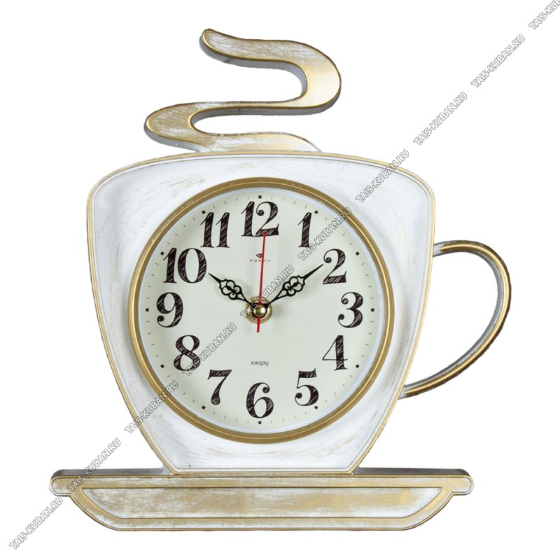 Часы (пластик) фигурные (26х24см) Часы (пластик) фигурные (26х24см) "Чайник" белый с золотом