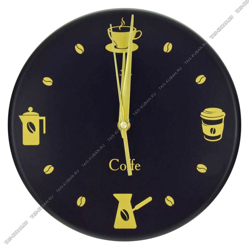 Часы (металл) круг.d27см "Время для кофе" черные, п/у (10) ТМ Рубин
