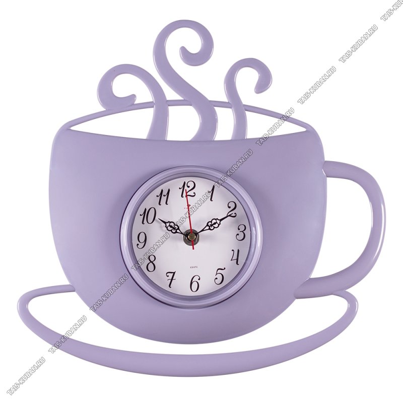 Часы (пластик) (31х30см) Часы (пластик) (31х30см) "Чашка с дымком" сиреневый (10)
