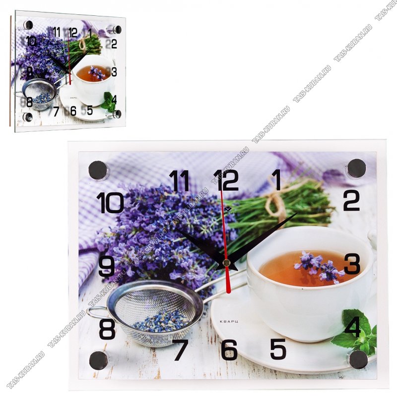 Часы (стекло/ДВП) (25х20см) "Чай с лавандой" (10)