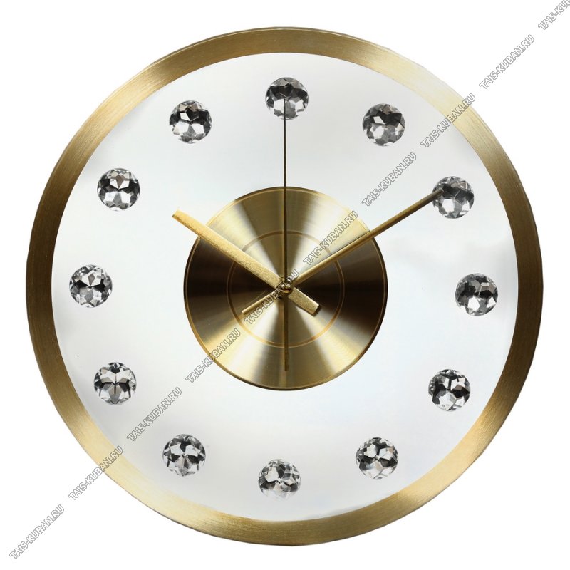 Часы (алюмин.корпус) круг d30см "Брюлик" золото/бел, бесшумный мех-зм (12)