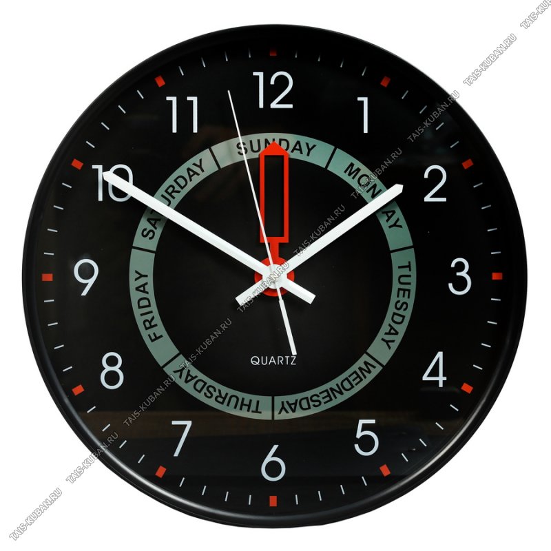 Часы (пластик) круглые d35см "Week" черные (12)