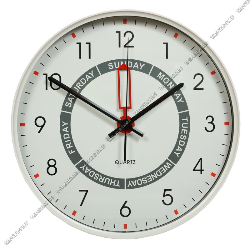 Часы (пластик) круглые d35см Часы (пластик) круглые d35см "Week" белые (12)