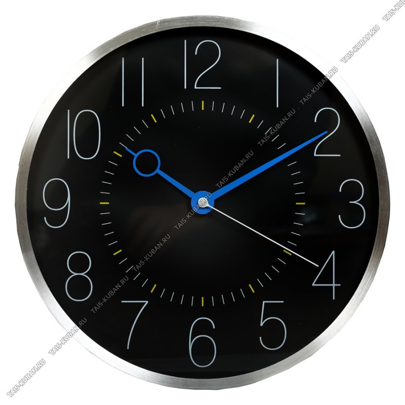 Часы (алюмин.корпус) круг d36см "Лион" серебро/черн,син.стрелки, бесшумный мех-зм (12)