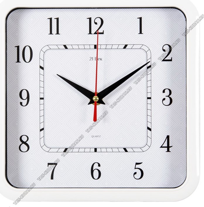 Часы (стекло/пластик) квадр.(30х30см) Часы (стекло/пластик) квадр.(30х30см) "Классика" белый,круп.цифры п/у (10)