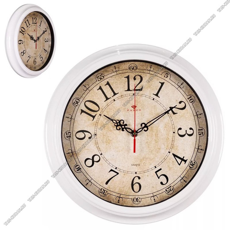 Часы (стекло/пластик) круг.d21см Часы (стекло/пластик) круг.d21см "Классика" широкий белый корпус, круп.цифры п/у (10)
