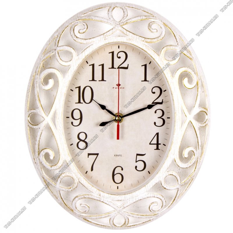 Часы (стекло/дерево) овал (26х31см) "Классика" корпус бело-золот,п/у (10)