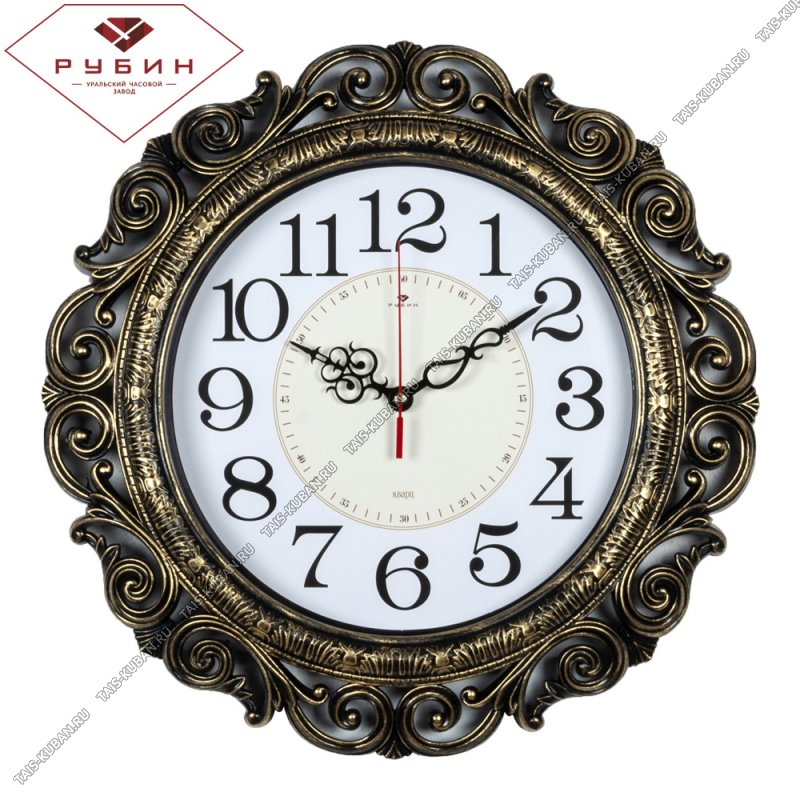 Часы (пластик) кругл.d40,5см Часы (пластик) кругл.d40,5см "Ажурные" корпус п/бронзу с орнам.,п/у (5)
