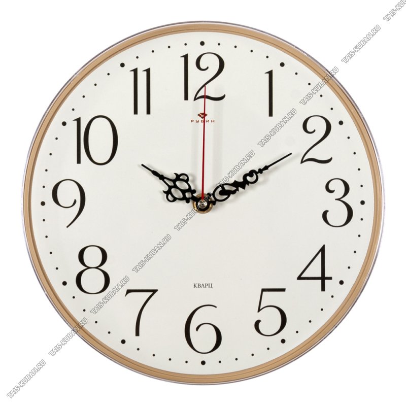 Часы (пластик) круглые d25см "Классика" бежевые, крупный цифры (10)
