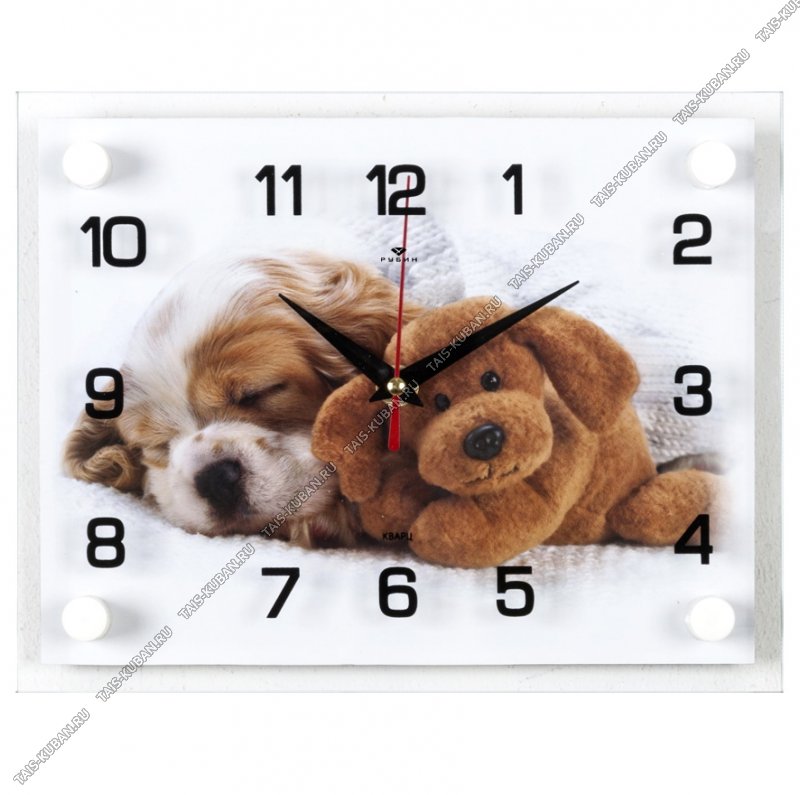Часы детск. (стекло/дерево) прямоуг.(26х20см) Часы детск. (стекло/дерево) прямоуг.(26х20см) "Щенок и плюшевый мишка" п/у (10)
